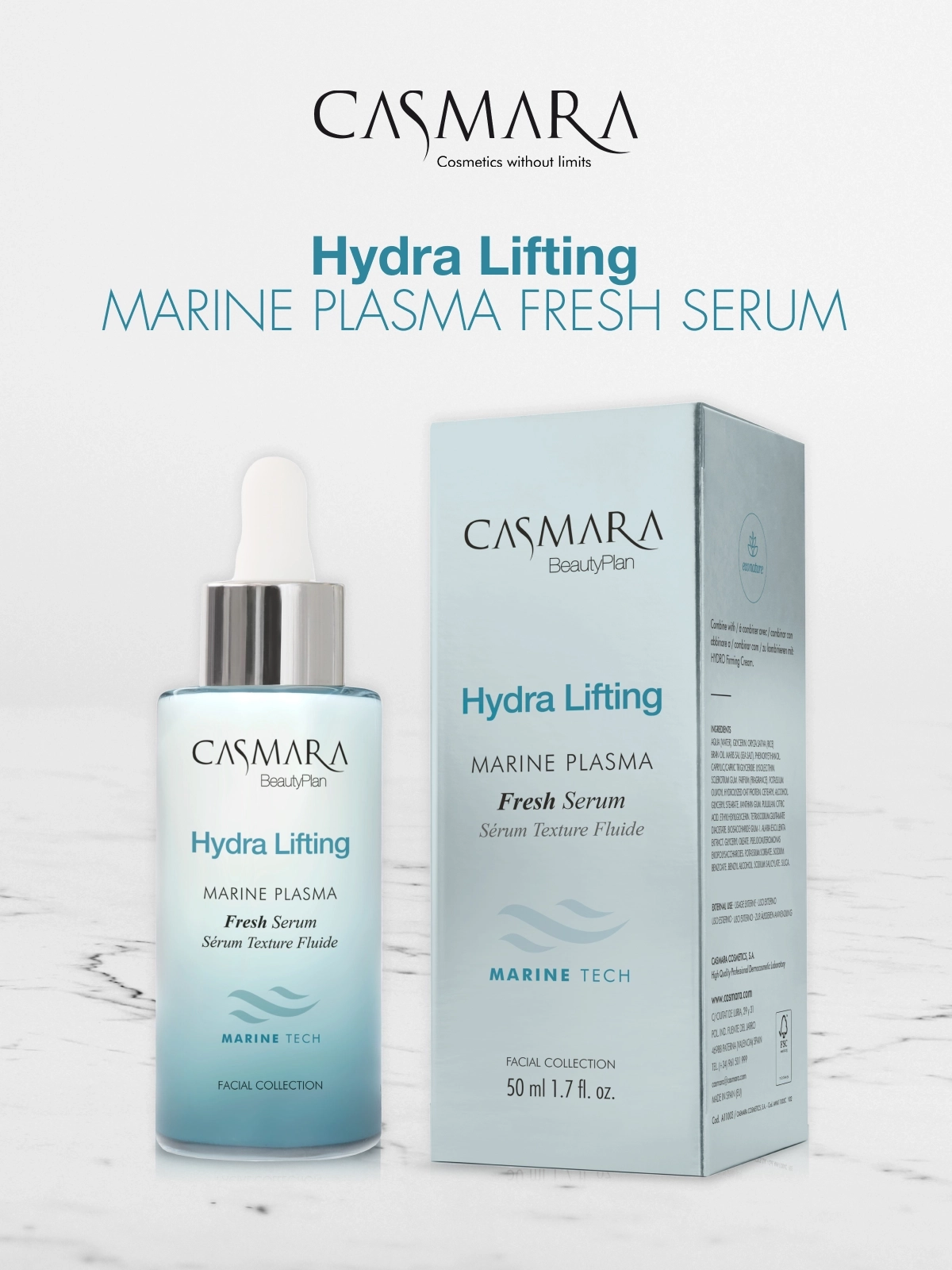 Serum facial de textura ligera con biotecnología marina. Un nuevo concepto que responde a la fusión de activos marinos naturales y los últimos avances en investigación científica para reafirmar la piel. Es una línea de cosmética natural libre de parabenos y siliconas. Formulada a base de agua de mar, de acción revitalizante y tonificante gracias a su alto contenido en oligoelementos y extractos de algas de propiedades innovadoras en los cuidados de la piel. Indicada para pieles maduras que necesiten una reafirmación profunda, incluso piel sensible.